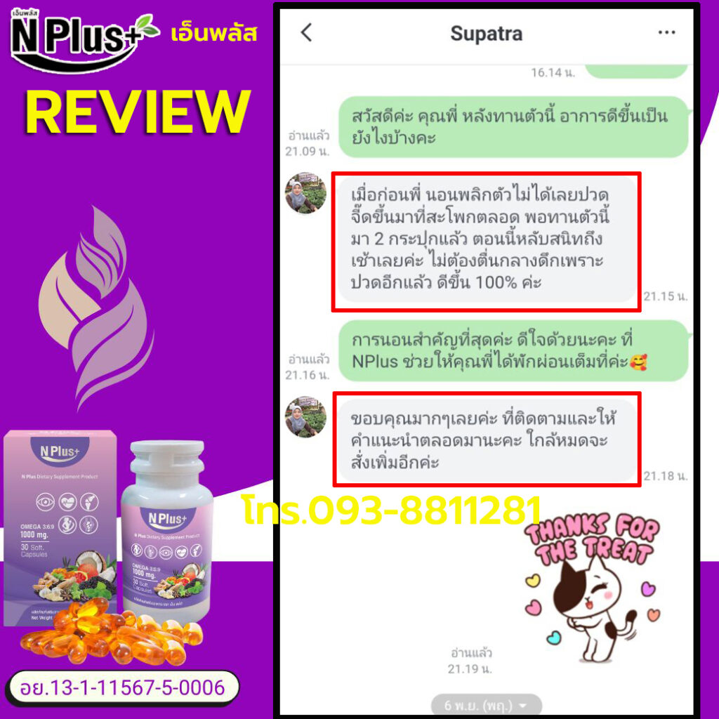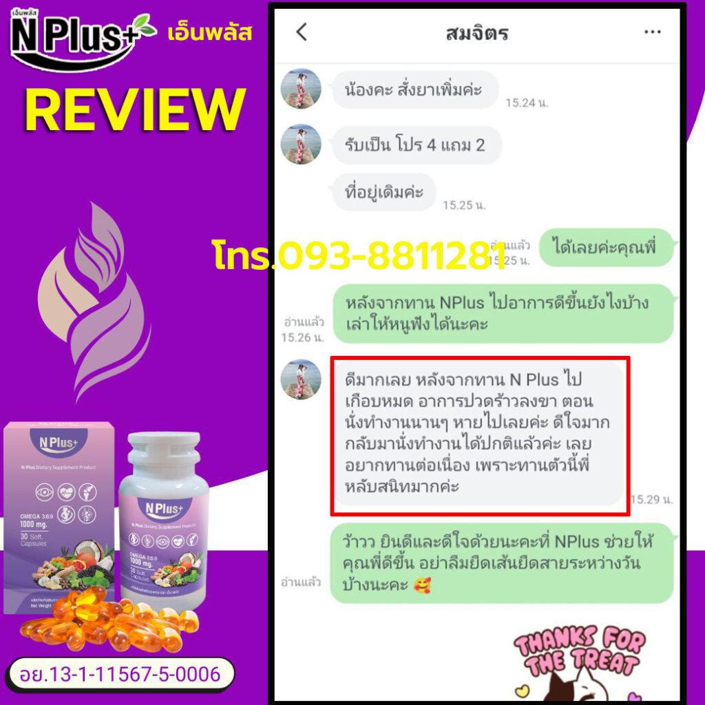 สุดท้ายนี้ พี่อยากจะมาแชร์ประสบการณ์ตรงนี้ให้ทุกคนฟังนะคะ สำหรับใครที่กำลังเจอปัญหาแบบเดียวกับพี่ ปวดก้นลึก ๆ ปวดร้าวลงขา นั่งก็ทรมาน นอนก็ไม่สบาย… อย่าเพิ่งท้อนะคะ ลองเปิดใจให้ NPlus ดู พี่ทานแล้วเห็นผลกับตัวเอง จึงอยากมาบอกต่อค่ะ เป็นสมุนไพร ปลอดภัยต่อร่างกายในระยะยาว ได้ประโยชน์สารอาหารดี ๆ จากธรรมชาติ คุ้มค่ามาก ๆ ค่ะ