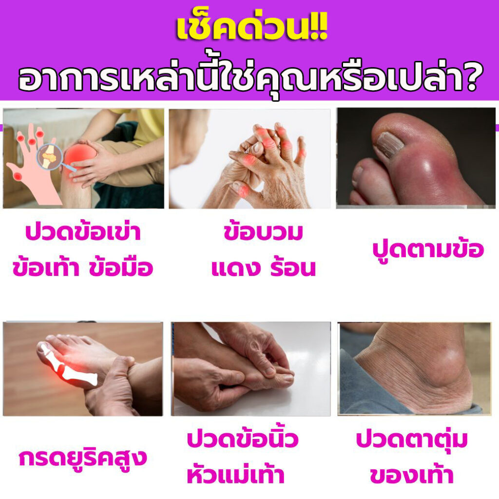 • ช่วยฟื้นฟูข้อ ลดกรดยูริค ลดปวด บวม อักเสบ” จากโรคเก๊าท์ แก้ปัญหาที่ต้นเหตุ กระตุ้นการไหลเวียนโลหิต เสริมภูมิคุ้มกัน บำรุงร่างกายแบบองค์รวม
